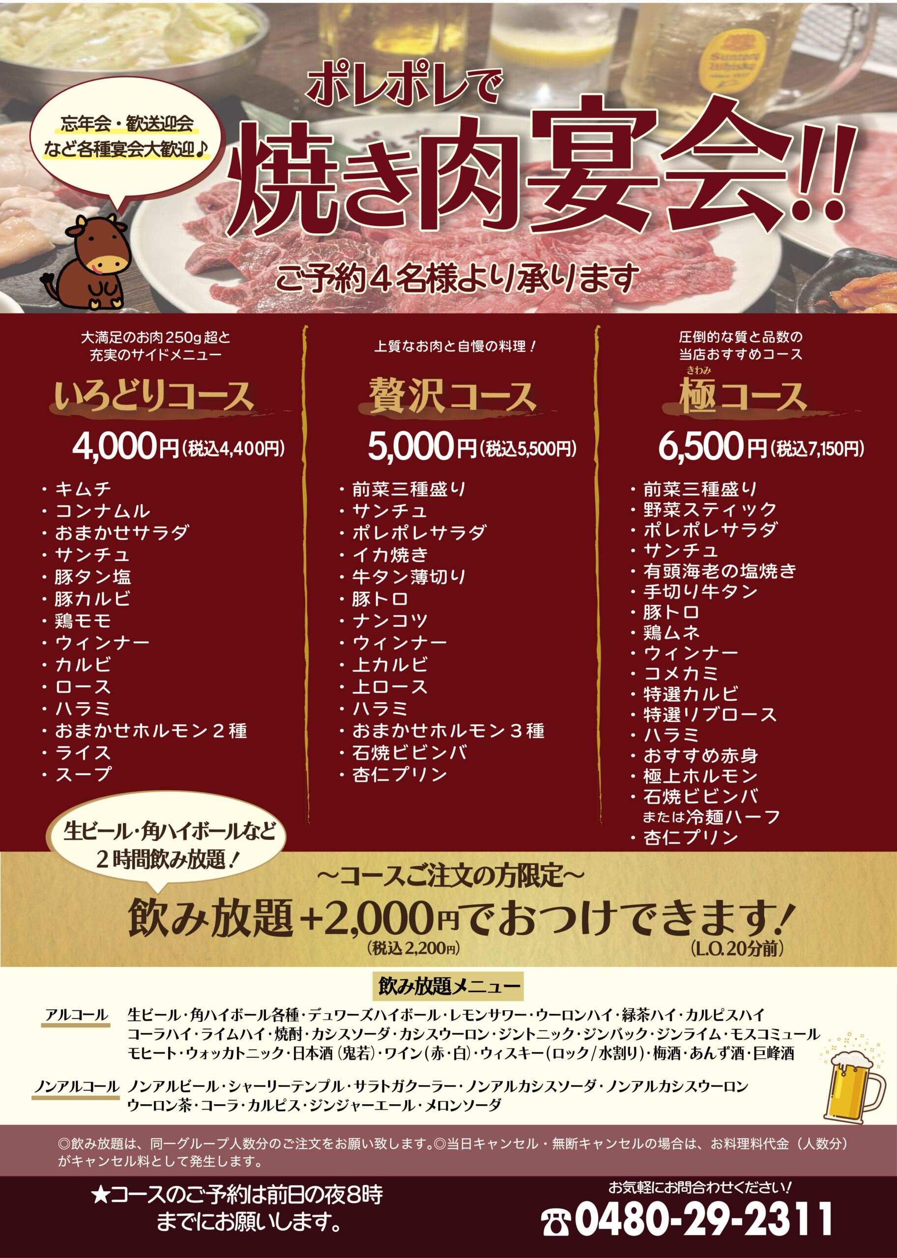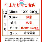 忘年会コースのお知らせ【12月は火曜日も営業します!】